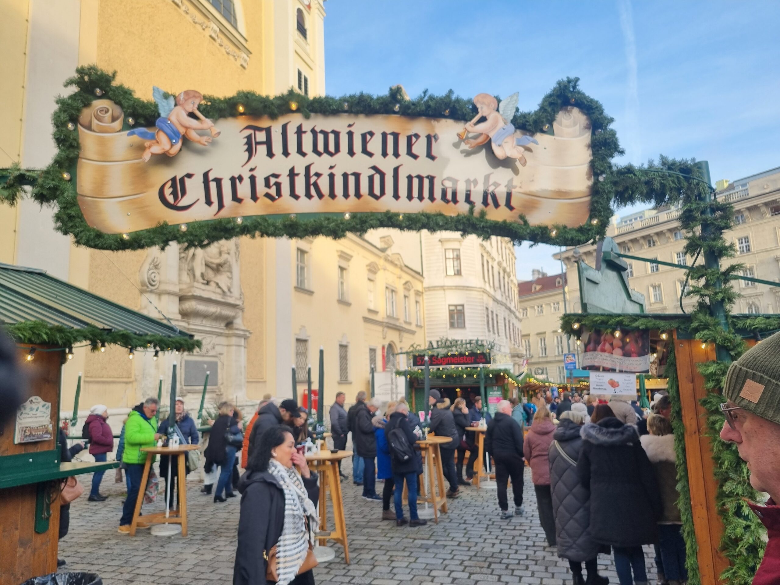 Unsere Stadtspaziergänger trafen sich vor der Schottenkirche in Wien zum Spaziergang durch drei Christkindlmärkte in Wien. Wir begannen am Alt-Wiener Adventmarkt auf der Freyung, spazierten von dort zum Platz am Hof und dann weiter zum Stephansplatz, wo wir nach einem Abstecher in das Stock-im-Eisen-Haus neben dem dortigen Markt auch die gerüstlose Stephanskirche bewunderten. Den Abschluss gabs in der Aida in der Bognergasse.